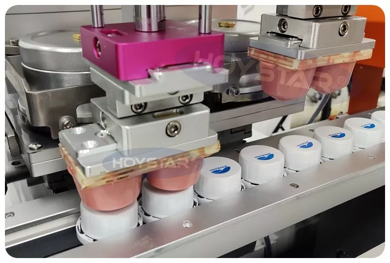 As the professional manufacturer in China, we would like to provide you high-efficiency HOYSTAR 2 Colors Bottle Caps Pad Printer with Plasma Treatment, which is specially designed for printing on bottle caps. Our machine is fully automatic, equipped with automatic feeding, automatic plasma treatment, automatic printing, automatic drying and automatic unloading. Machine is very easy to operate and have stable printing performance.