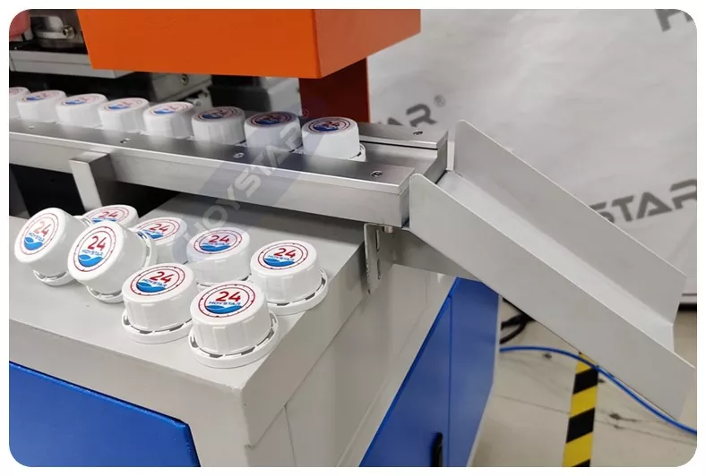 The 2 Colors Bottle Caps Pad Printer with Plasma Treatment equipped with Automatic vibration feeder can realize automatic loading without manual operation, saving manpower