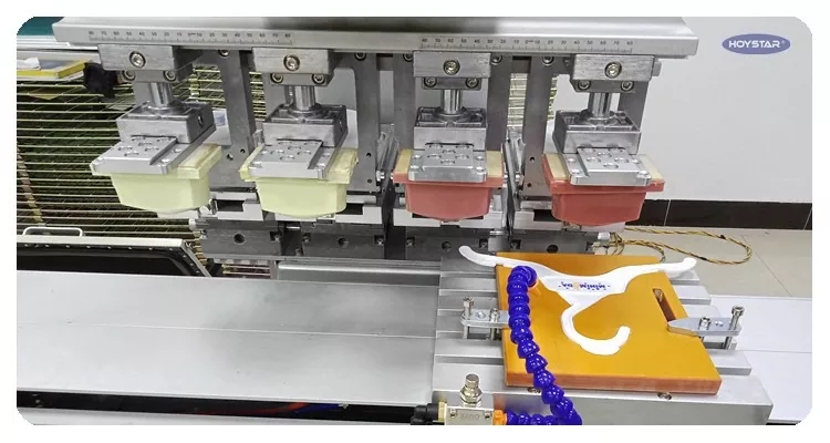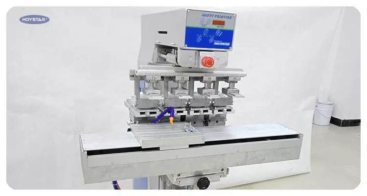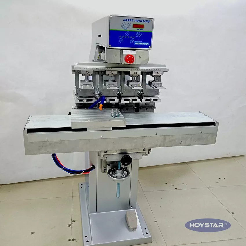 This HOYSTAR 4 Color Pad Printer With Shuttle Worktable for Cover is a high-capability and cost-effective printing equipment. The machine offer convenient adjustment, stable operation and good printing effect. The machine delivers steady printing quality and suitable for printing a wide range of items such as electronic products, plastic shells, hardware products, stationery, small arts and crafts, as well as the small logos on the surface of gifts and more. Can meet diverse printing requirement of customer.