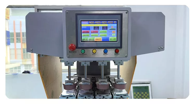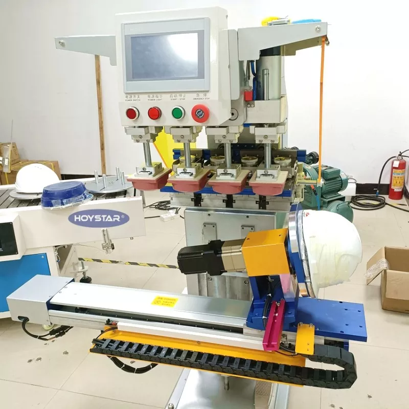 Shop customized 4 Color Pad Printing Machine For Helmet from Dongguan Hoystar Machinery Co., Ltd., which is one of the manufacturers and suppliers in China. This HOYSTAR 4 Color Pad Printing Machine For Helmet equipped with PLC touch screen control panel easy to operation. This machine features servo motor control for automatic rotary printing, offering options to print on 1 side, 2 sides, or 4 sides of helmets. The worktable is driven left/right, rotary angel, product heights can be adjusted. Each printing head is independently adjustable and can be set up separately.