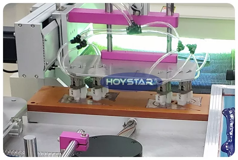 As the professional manufacturer and supplier, HOYSTAR supplies Automatic Screen Printing Machine For Rulers Machine equipped with high speed rotary worktable, PLC touchscreen controls, automatic loading and unloading system, system, suitable for printing on various ruler