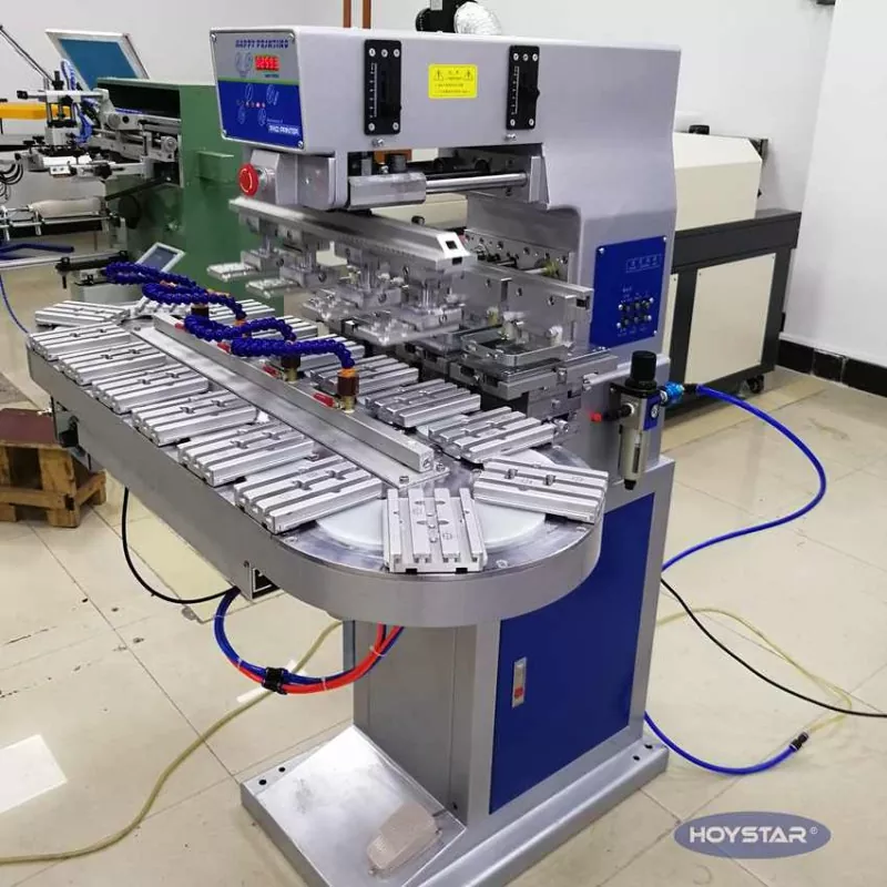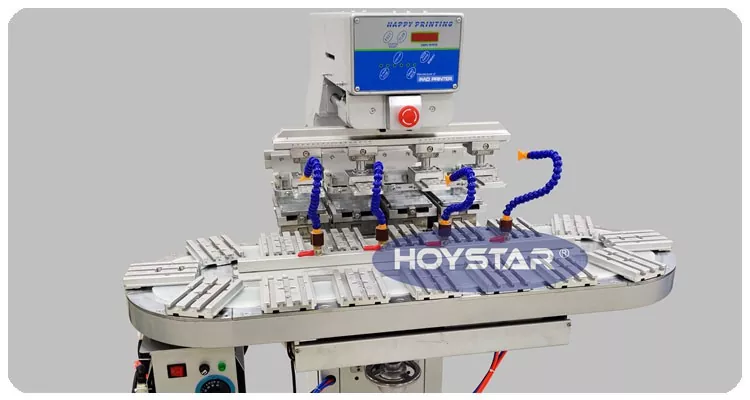High-quality Big Size Four Color Pad Printer With Conveyor with a cheap price can be wholesaled from our factory called Dongguan Hoystar Machinery Co., Ltd., which is one of the manufacturers and suppliers in China. This HOYSTAR Big Size Four Color Pad Printer With Conveyor is a high-capability and cost-effective printing equipment. The machine offer convenient adjustment, stable operation and good printing effect. The machine suitable for printing a wide range of industries and applications, it is perfectly suited for printing on electronic products, plastic housings, hardware components, stationery, small arts & crafts, as well as logos and graphics on gifts, toys, and promotional items.