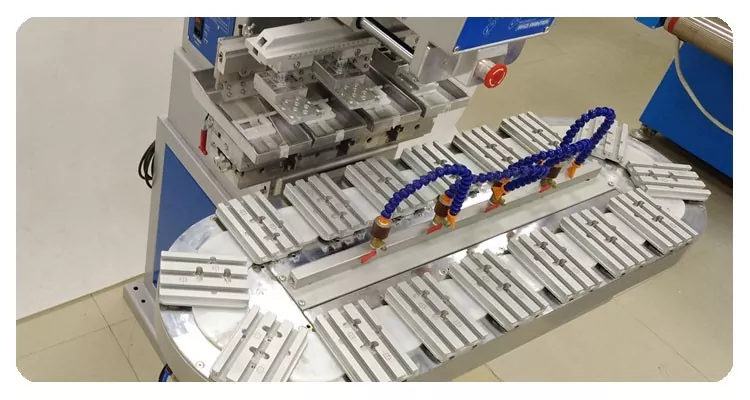 Equipped with rotary table, convenient for loading and unloading product and has a high printing efficiency